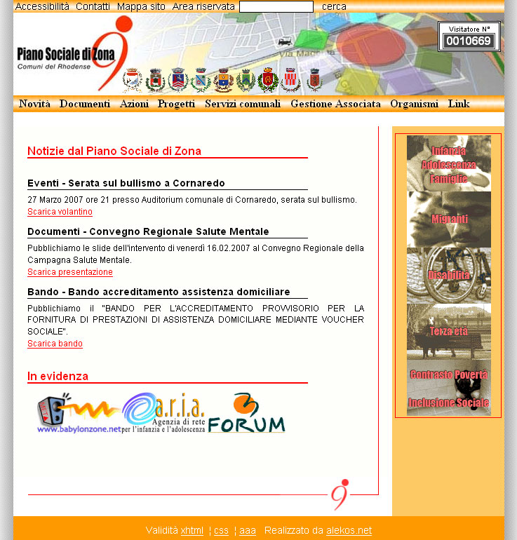 sito del Piano Sociale di Zona dei comuni del Rhodense. CSS e Accessibilità . galleria link https://www.alekos.net/it/piano-sociale-rhodense